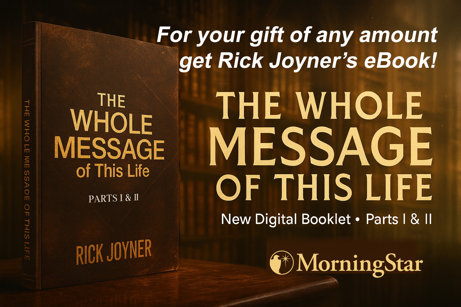 “For years I’ve said finishing well matters more than starting fast. The Lord told me recently my time to finish my course is almost over, so I’m focusing on what matters most—to convey the revelation of the whole message of this Life. That’s why I just released my brand-new eBooklet, The Whole Message of This Life (Parts 1 & 2)—the first installment of this series. I believe this may be the most important series I’ve ever shared.” – Rick Joyner